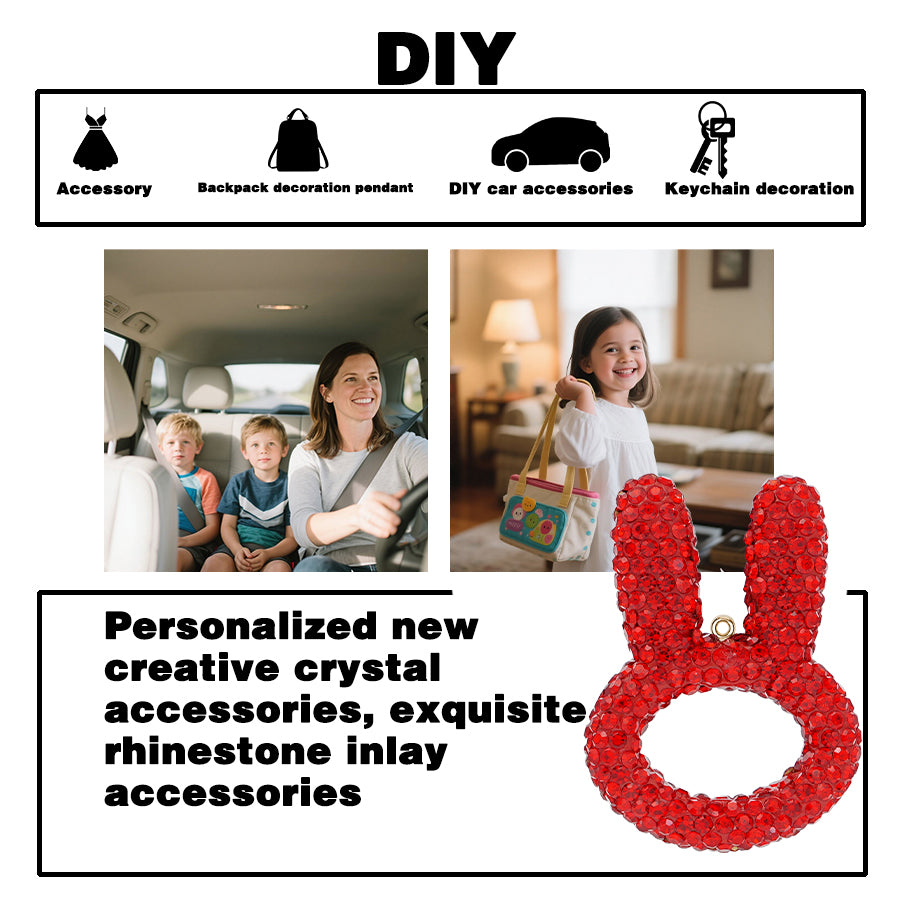 3D rhinestone rabbit ear accessory - a cute rabbit pendant suitable for decorating cars, backpacks, and keychains. Sparkling rabbit ear pendant - handmade crystal accessory suitable for DIY fashion and gifts